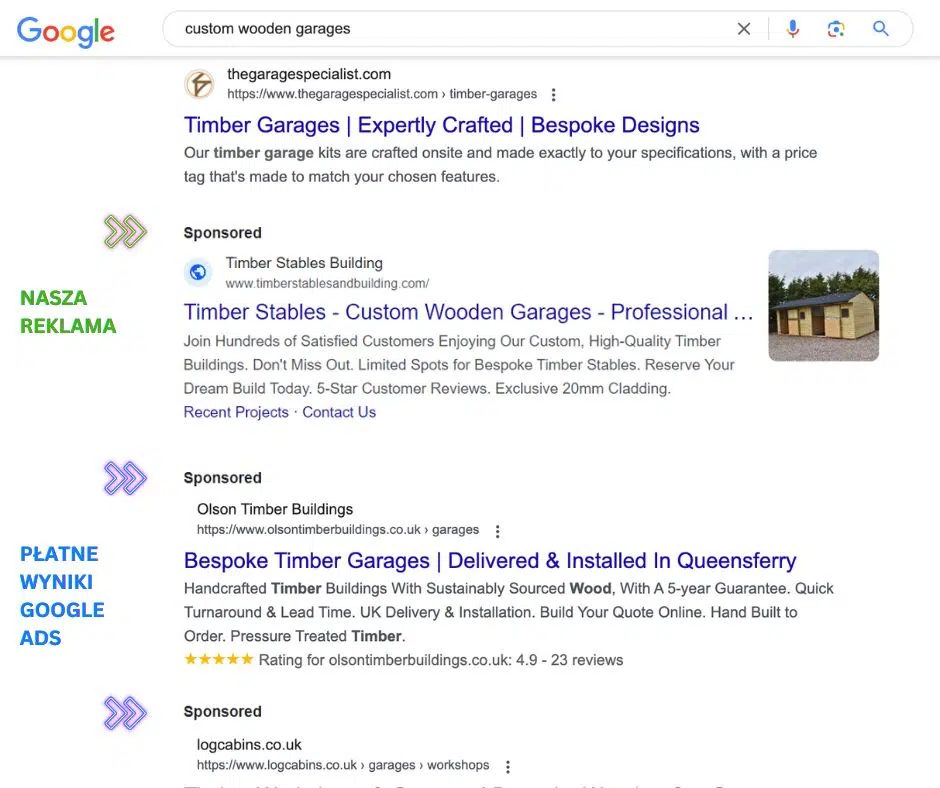 Wyobraź sobie, że wpisujesz w Google „custom wooden garages” i natychmiast na samym szczycie wyników pojawia się Twoja firma.